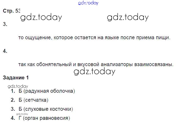 На страницах сайта gdz.today вы найдете учебный и вспомогательный материал, направленный на улучшения знаний школьной программы. ГДЗ - онлайн мир знаний Решение к части 2. Страницы 53 Рабочей тетради по Биологии для 8 класса Маш, Драгомилов Вентана-граф Алгоритм успеха 2019