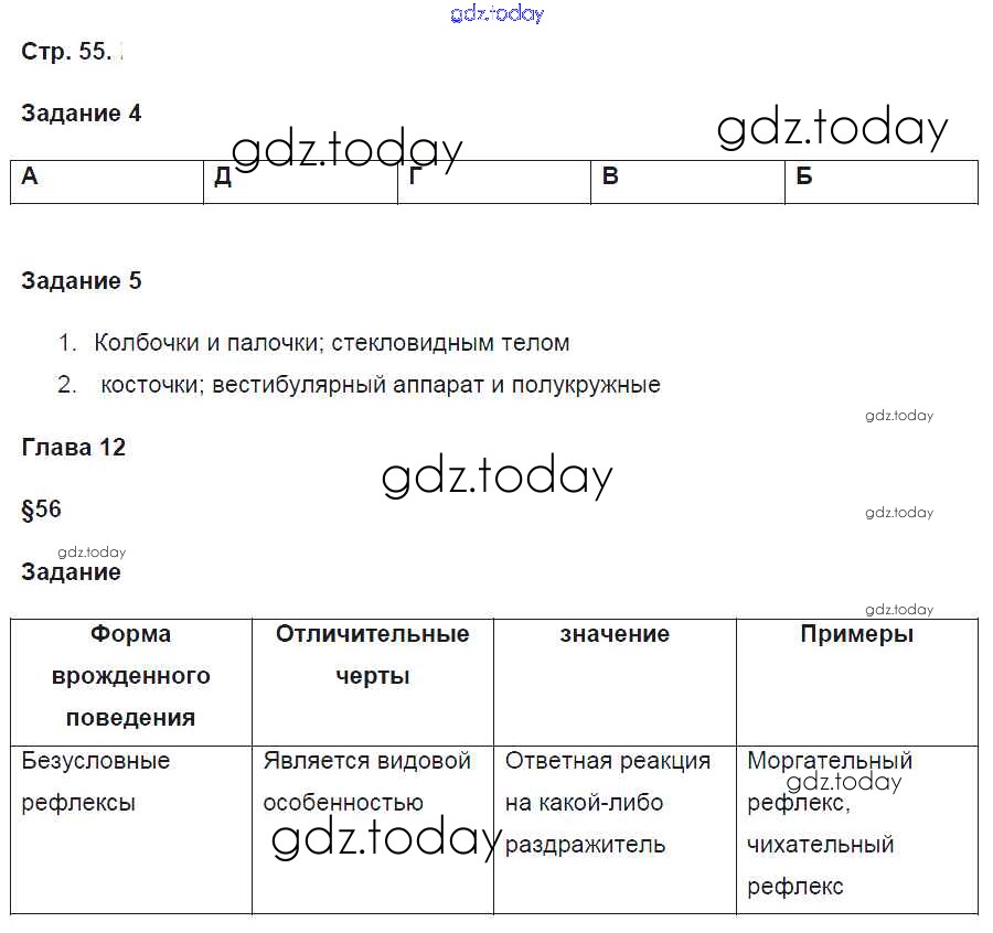 На страницах сайта gdz.today вы найдете учебный и вспомогательный материал, направленный на улучшения знаний школьной программы. ГДЗ - онлайн мир знаний Решение к части 2. Страницы 55 Рабочей тетради по Биологии для 8 класса Маш, Драгомилов Вентана-граф Алгоритм успеха 2019