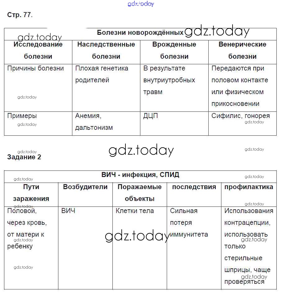 На страницах сайта gdz.today вы найдете учебный и вспомогательный материал, направленный на улучшения знаний школьной программы. ГДЗ - онлайн мир знаний Решение к части 2. Страницы 77 Рабочей тетради по Биологии для 8 класса Маш, Драгомилов Вентана-граф Алгоритм успеха 2019