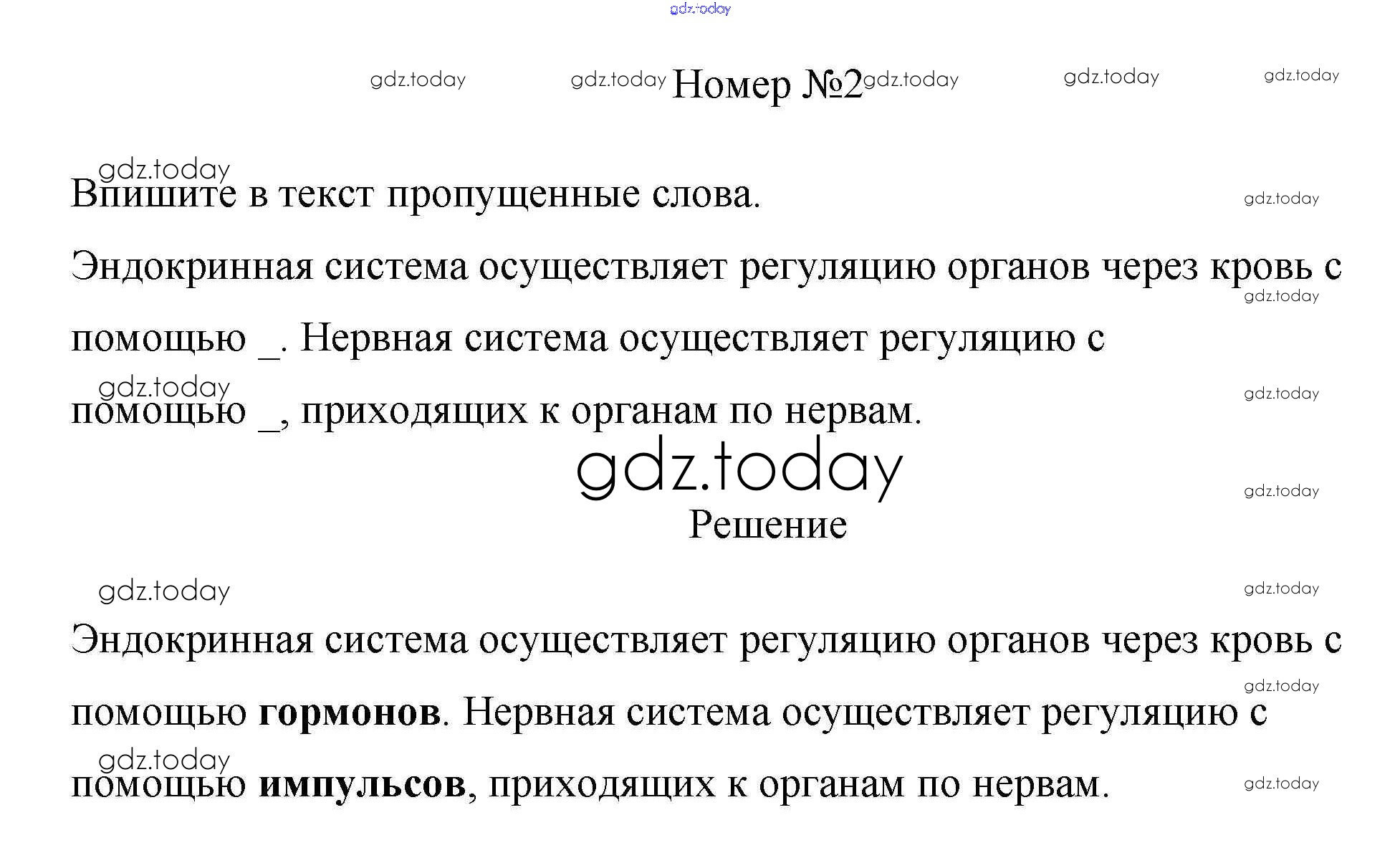 На страницах сайта gdz.today вы найдете учебный и вспомогательный материал, направленный на улучшения знаний школьной программы. ГДЗ - онлайн мир знаний §6. Регуляция процессов жизнедеятельности 2 Рабочей тетради по Биологии для 8 класса Пасечник, Швецов Просвещение Линия жизни 2019