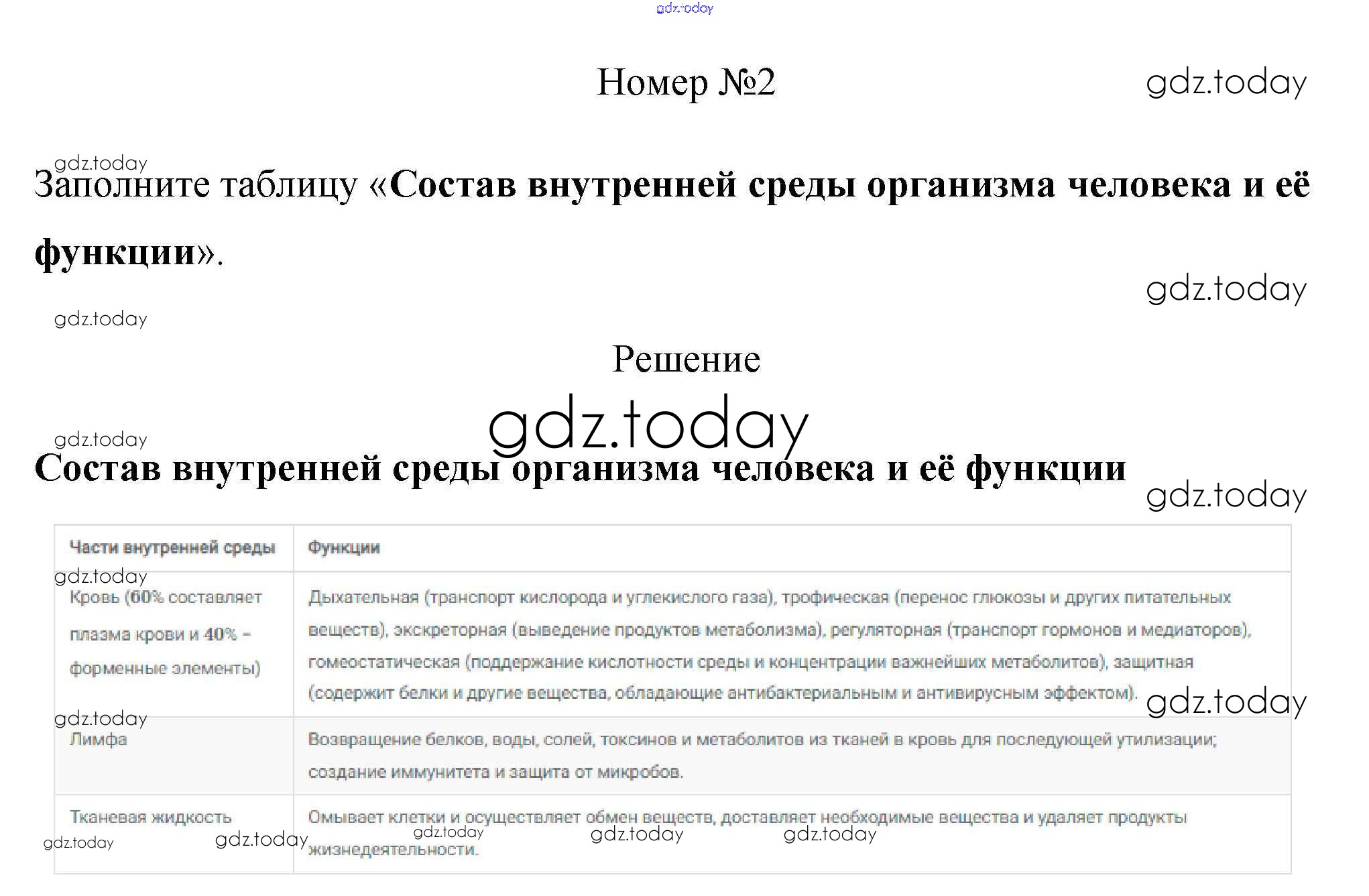 На страницах сайта gdz.today вы найдете учебный и вспомогательный материал, направленный на улучшения знаний школьной программы. ГДЗ - онлайн мир знаний §13. Состав внутренней среды организма и её функции 2 Рабочей тетради по Биологии для 8 класса Пасечник, Швецов Просвещение Линия жизни 2019