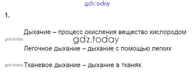 Ответы к §20. Дыхание и его значение 1 Рабочей тетради по Биологии для 8 класса Пасечник, Швецов Просвещение Линия жизни 2019