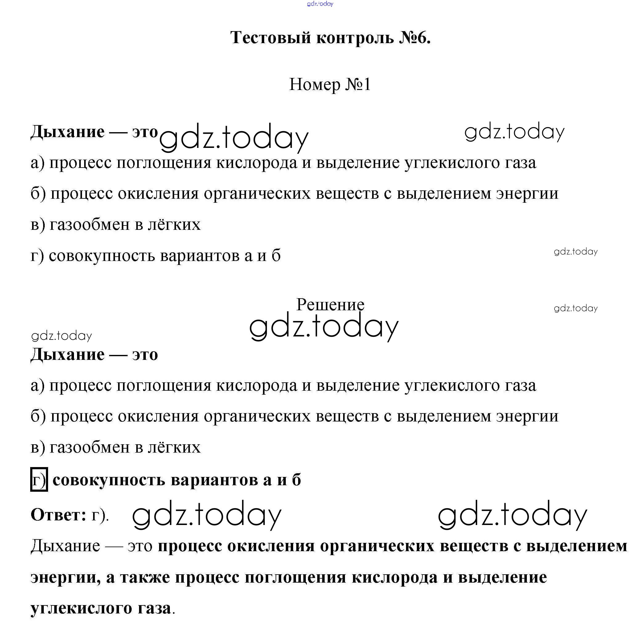 На страницах сайта gdz.today вы найдете учебный и вспомогательный материал, направленный на улучшения знаний школьной программы. ГДЗ - онлайн мир знаний Тестовый контроль 6 1 Рабочей тетради по Биологии для 8 класса Пасечник, Швецов Просвещение Линия жизни 2019
