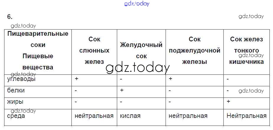 На страницах сайта gdz.today вы найдете учебный и вспомогательный материал, направленный на улучшения знаний школьной программы. ГДЗ - онлайн мир знаний §26. Пищеварение в желудке и кишечнике 6 Рабочей тетради по Биологии для 8 класса Пасечник, Швецов Просвещение Линия жизни 2019