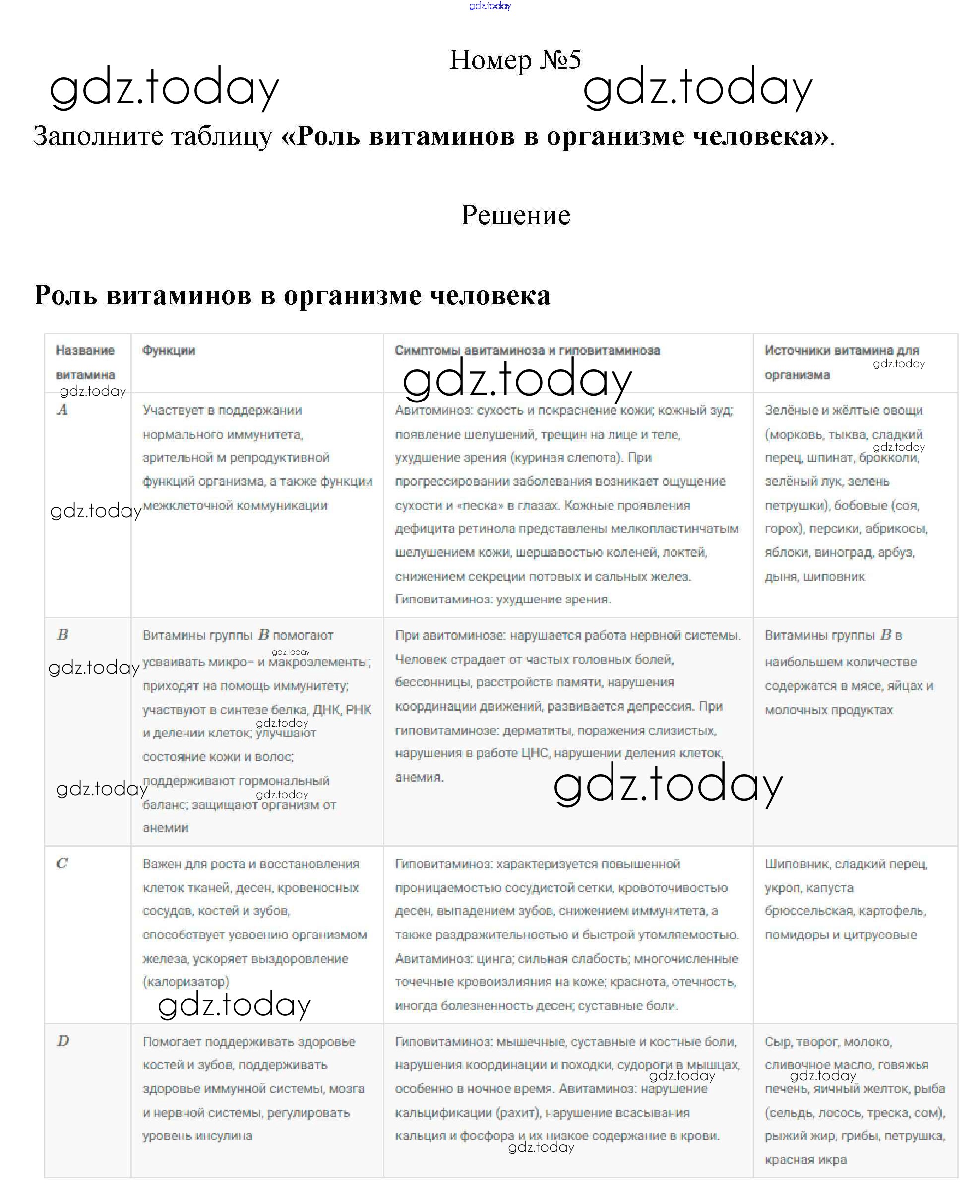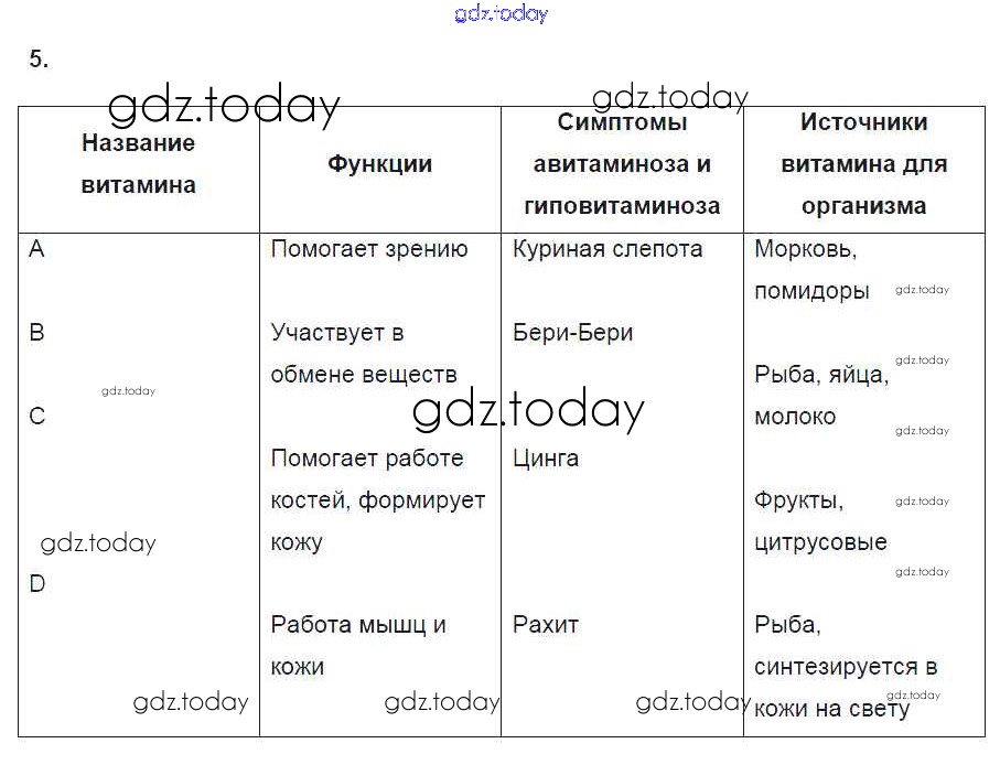 На страницах сайта gdz.today вы найдете учебный и вспомогательный материал, направленный на улучшения знаний школьной программы. ГДЗ - онлайн мир знаний §31. Витамины и их роль в организме человека 5 Рабочей тетради по Биологии для 8 класса Пасечник, Швецов Просвещение Линия жизни 2019