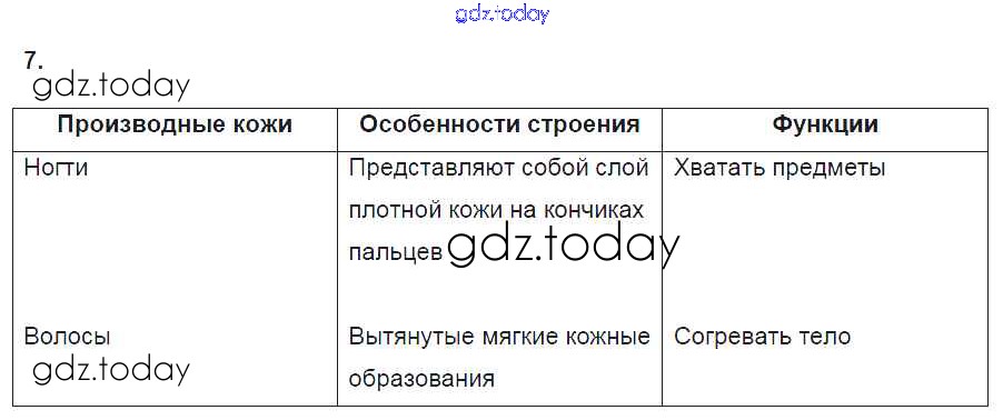 На страницах сайта gdz.today вы найдете учебный и вспомогательный материал, направленный на улучшения знаний школьной программы. ГДЗ - онлайн мир знаний §35. Наружные покровы тела 7 Рабочей тетради по Биологии для 8 класса Пасечник, Швецов Просвещение Линия жизни 2019
