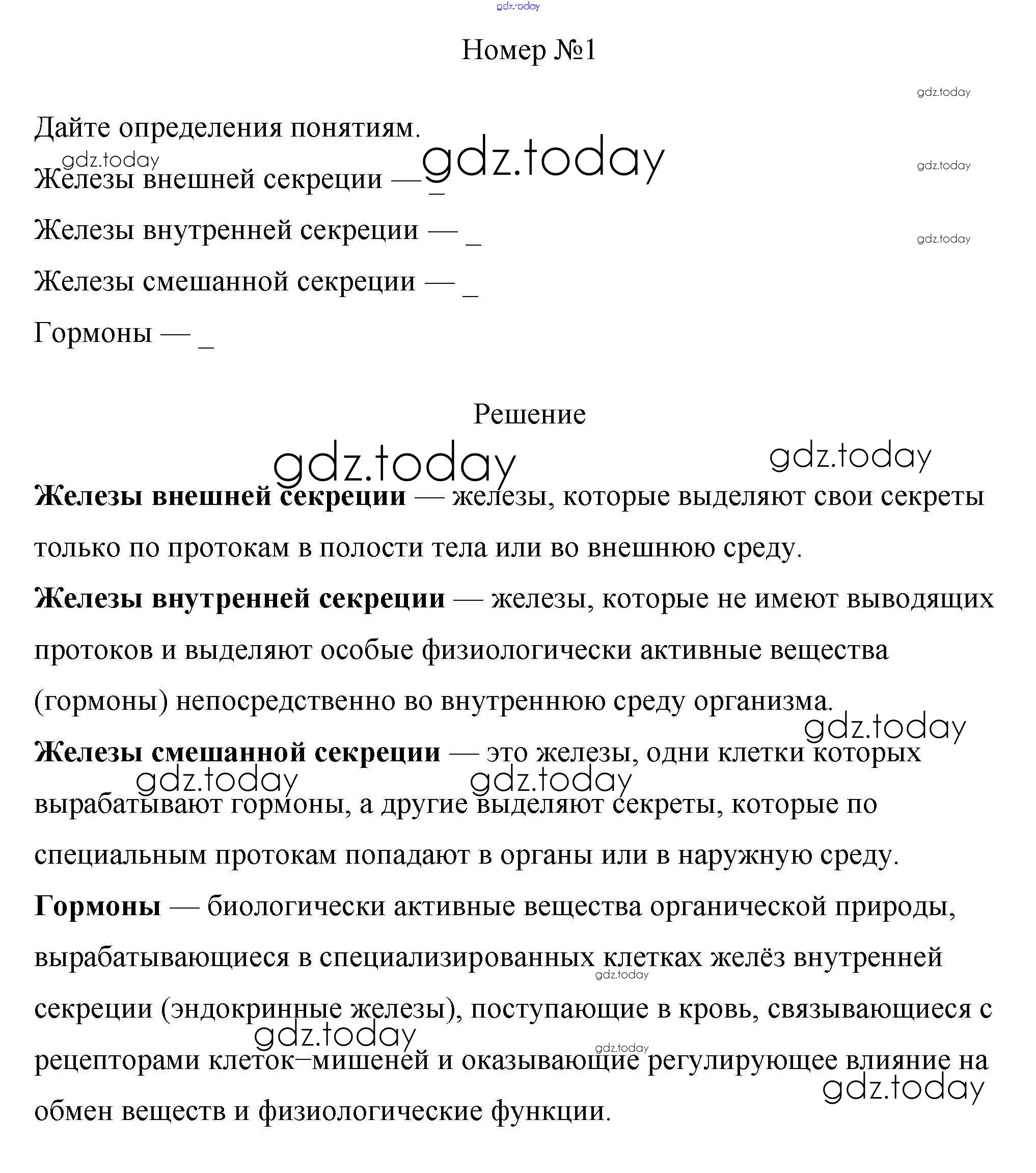 На страницах сайта gdz.today вы найдете учебный и вспомогательный материал, направленный на улучшения знаний школьной программы. ГДЗ - онлайн мир знаний §38. Железы внутренней секреции и их функции 1 Рабочей тетради по Биологии для 8 класса Пасечник, Швецов Просвещение Линия жизни 2019