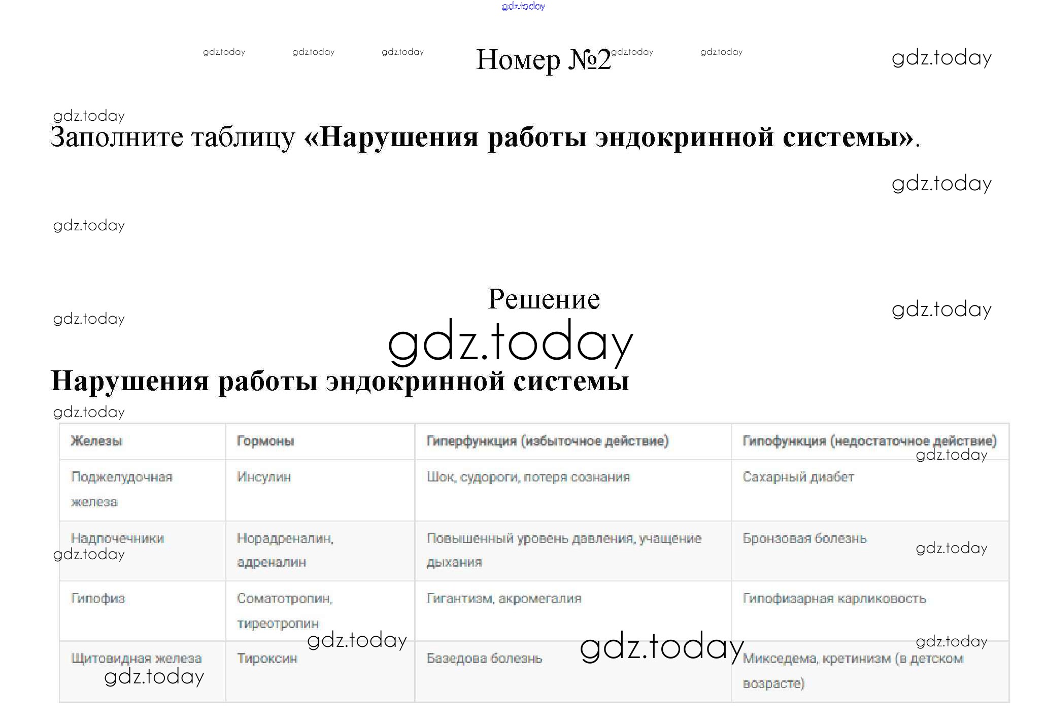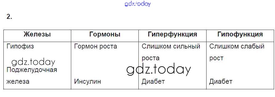 На страницах сайта gdz.today вы найдете учебный и вспомогательный материал, направленный на улучшения знаний школьной программы. ГДЗ - онлайн мир знаний §39. Работа эндокринной системы и её значение 2 Рабочей тетради по Биологии для 8 класса Пасечник, Швецов Просвещение Линия жизни 2019