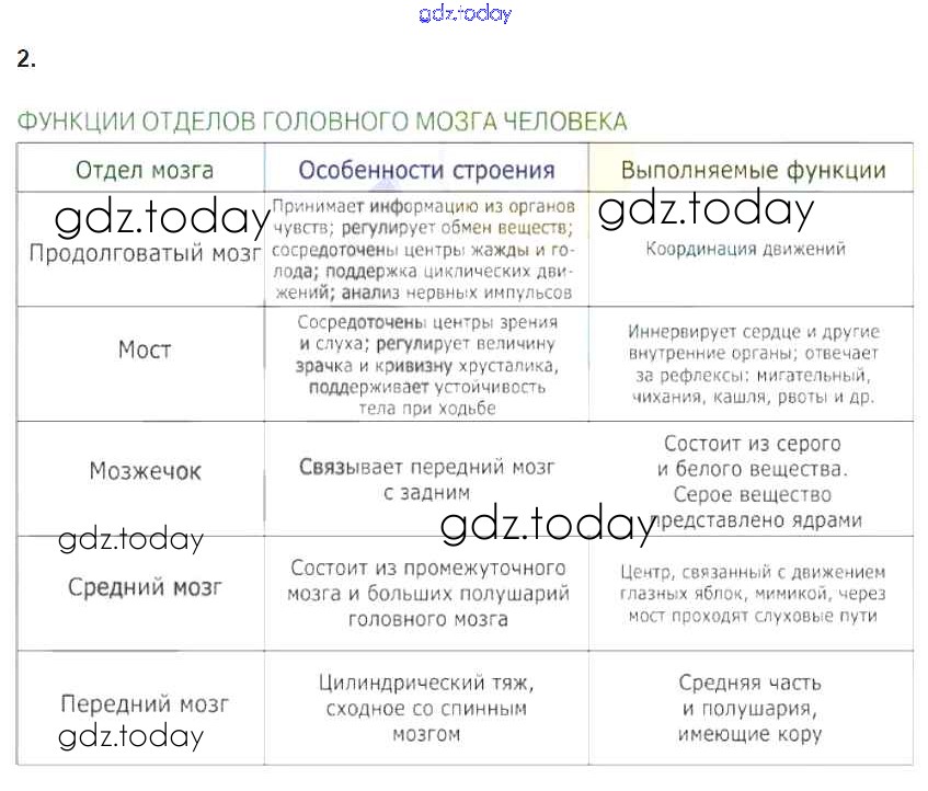 На страницах сайта gdz.today вы найдете учебный и вспомогательный материал, направленный на улучшения знаний школьной программы. ГДЗ - онлайн мир знаний §42. Головной мозг 2 Рабочей тетради по Биологии для 8 класса Пасечник, Швецов Просвещение Линия жизни 2019