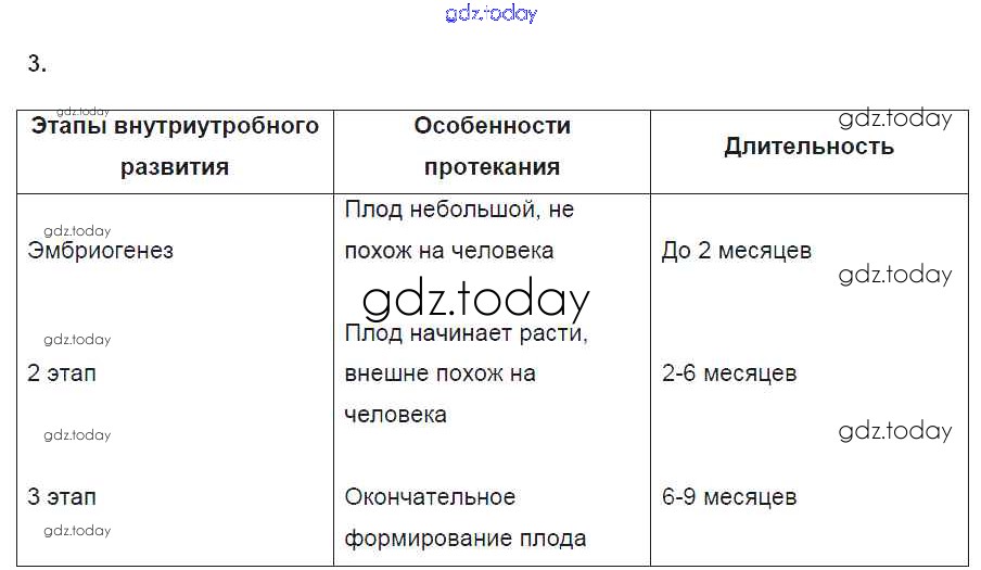 Ответы к §56. Беременность и роды 3 Рабочей тетради по Биологии для 8 класса Пасечник, Швецов Просвещение Линия жизни 2019