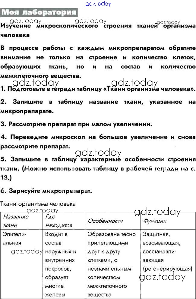На страницах сайта gdz.today вы найдете учебный и вспомогательный материал, направленный на улучшения знаний школьной программы. ГДЗ - онлайн мир знаний Моя лаборатория Решение к §4 1 Учебнику по Биологии для 8 класса Пасечник, Каменский Просвещение Линия жизни 2016