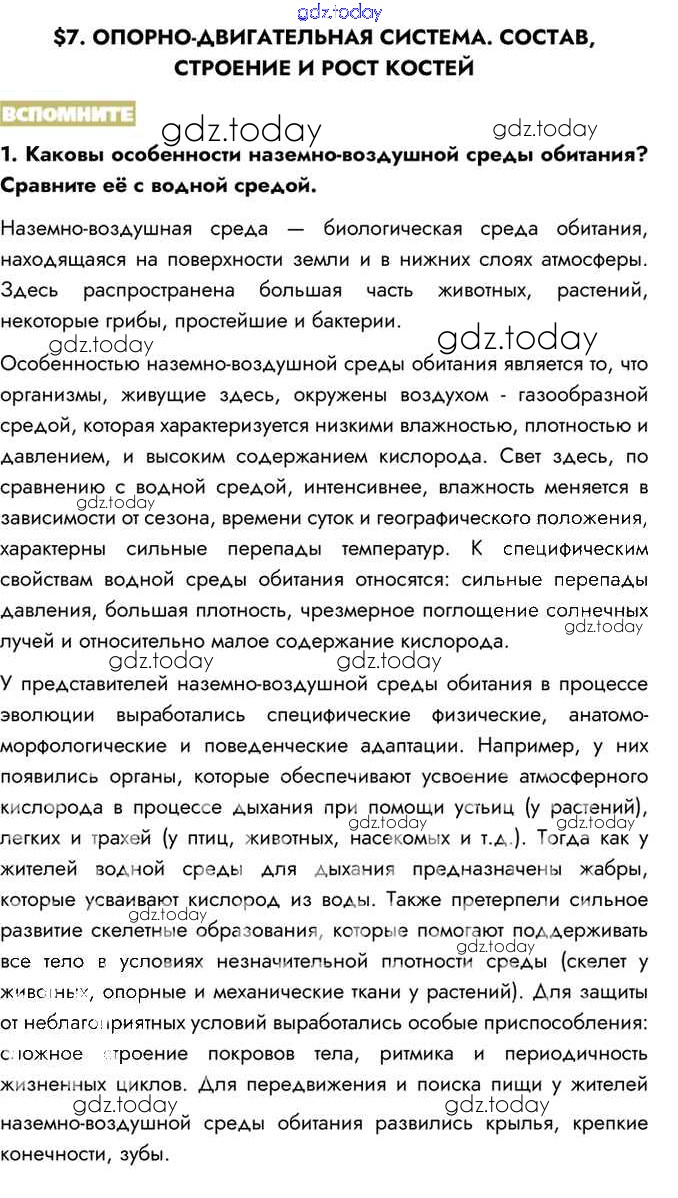 На страницах сайта gdz.today вы найдете учебный и вспомогательный материал, направленный на улучшения знаний школьной программы. ГДЗ - онлайн мир знаний Вспомните Решение к §7 1 Учебнику по Биологии для 8 класса Пасечник, Каменский Просвещение Линия жизни 2016