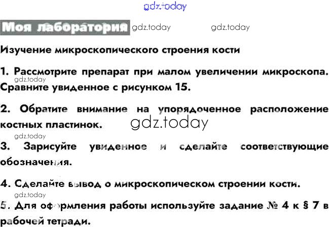 На страницах сайта gdz.today вы найдете учебный и вспомогательный материал, направленный на улучшения знаний школьной программы. ГДЗ - онлайн мир знаний Моя лаборатория Решение к §7 1 Учебнику по Биологии для 8 класса Пасечник, Каменский Просвещение Линия жизни 2016