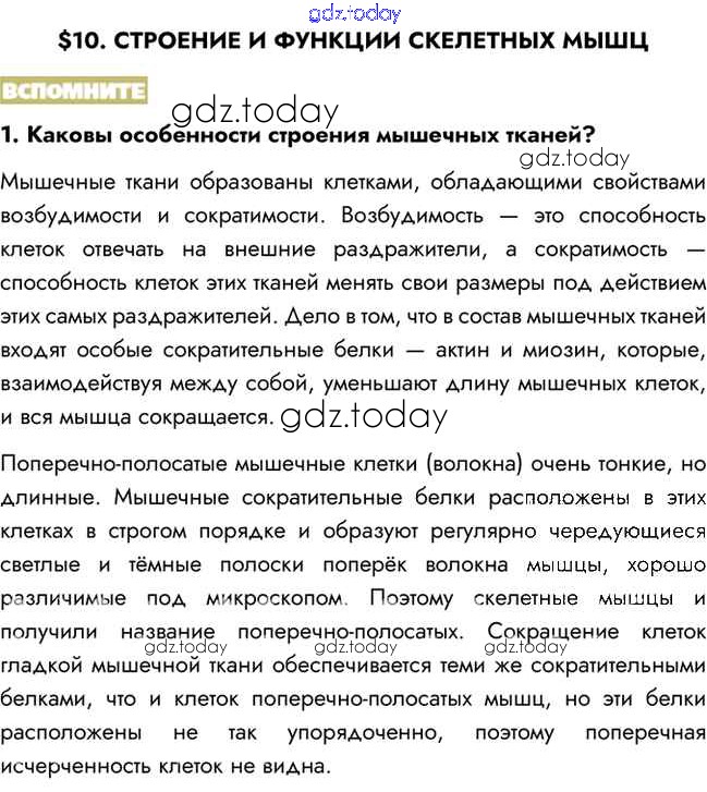 На страницах сайта gdz.today вы найдете учебный и вспомогательный материал, направленный на улучшения знаний школьной программы. ГДЗ - онлайн мир знаний Вспомните Решение к §10 1 Учебнику по Биологии для 8 класса Пасечник, Каменский Просвещение Линия жизни 2016