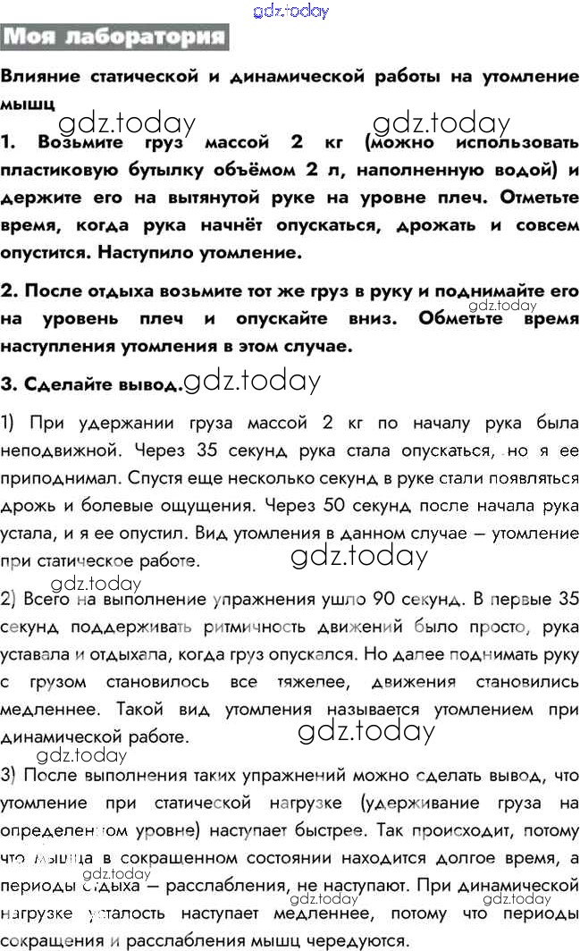 На страницах сайта gdz.today вы найдете учебный и вспомогательный материал, направленный на улучшения знаний школьной программы. ГДЗ - онлайн мир знаний Моя лаборатория Решение к §11 1 Учебнику по Биологии для 8 класса Пасечник, Каменский Просвещение Линия жизни 2016
