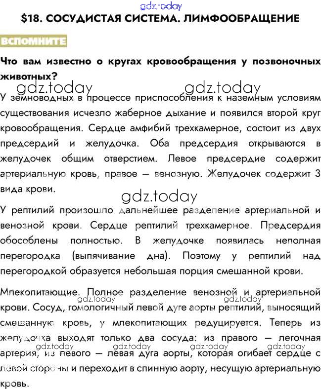 На страницах сайта gdz.today вы найдете учебный и вспомогательный материал, направленный на улучшения знаний школьной программы. ГДЗ - онлайн мир знаний Вспомните Решение к §18 1 Учебнику по Биологии для 8 класса Пасечник, Каменский Просвещение Линия жизни 2016