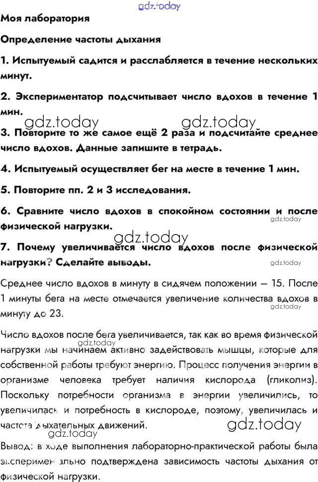 На страницах сайта gdz.today вы найдете учебный и вспомогательный материал, направленный на улучшения знаний школьной программы. ГДЗ - онлайн мир знаний Моя лаборатория Решение к §22 1 Учебнику по Биологии для 8 класса Пасечник, Каменский Просвещение Линия жизни 2016
