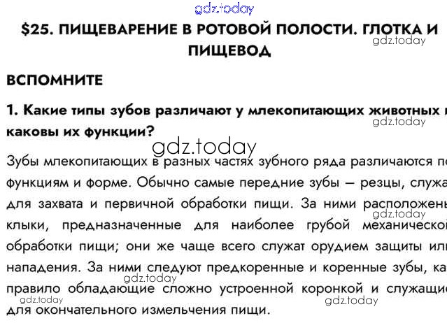 На страницах сайта gdz.today вы найдете учебный и вспомогательный материал, направленный на улучшения знаний школьной программы. ГДЗ - онлайн мир знаний Вспомните Решение к §25 1 Учебнику по Биологии для 8 класса Пасечник, Каменский Просвещение Линия жизни 2016