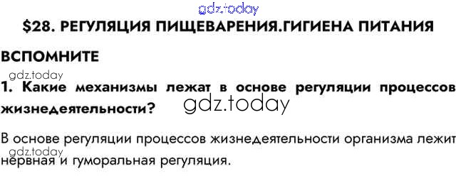 На страницах сайта gdz.today вы найдете учебный и вспомогательный материал, направленный на улучшения знаний школьной программы. ГДЗ - онлайн мир знаний Вспомните Решение к §28 1 Учебнику по Биологии для 8 класса Пасечник, Каменский Просвещение Линия жизни 2016