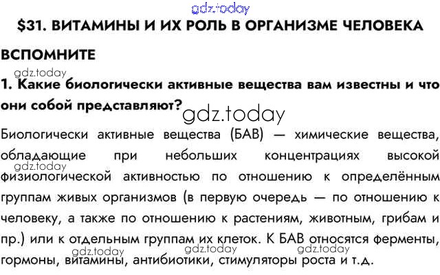 На страницах сайта gdz.today вы найдете учебный и вспомогательный материал, направленный на улучшения знаний школьной программы. ГДЗ - онлайн мир знаний Вспомните Решение к §31 1 Учебнику по Биологии для 8 класса Пасечник, Каменский Просвещение Линия жизни 2016