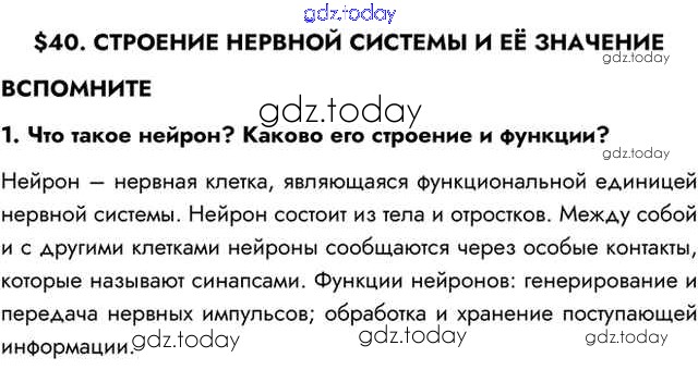На страницах сайта gdz.today вы найдете учебный и вспомогательный материал, направленный на улучшения знаний школьной программы. ГДЗ - онлайн мир знаний Вспомните Решение к §40 1 Учебнику по Биологии для 8 класса Пасечник, Каменский Просвещение Линия жизни 2016