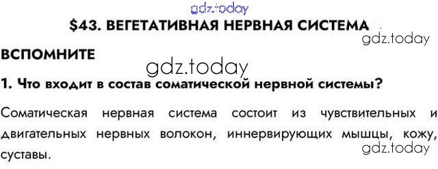 На страницах сайта gdz.today вы найдете учебный и вспомогательный материал, направленный на улучшения знаний школьной программы. ГДЗ - онлайн мир знаний Вспомните Решение к §43 1 Учебнику по Биологии для 8 класса Пасечник, Каменский Просвещение Линия жизни 2016
