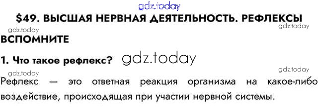 На страницах сайта gdz.today вы найдете учебный и вспомогательный материал, направленный на улучшения знаний школьной программы. ГДЗ - онлайн мир знаний Вспомните Решение к §49 1 Учебнику по Биологии для 8 класса Пасечник, Каменский Просвещение Линия жизни 2016