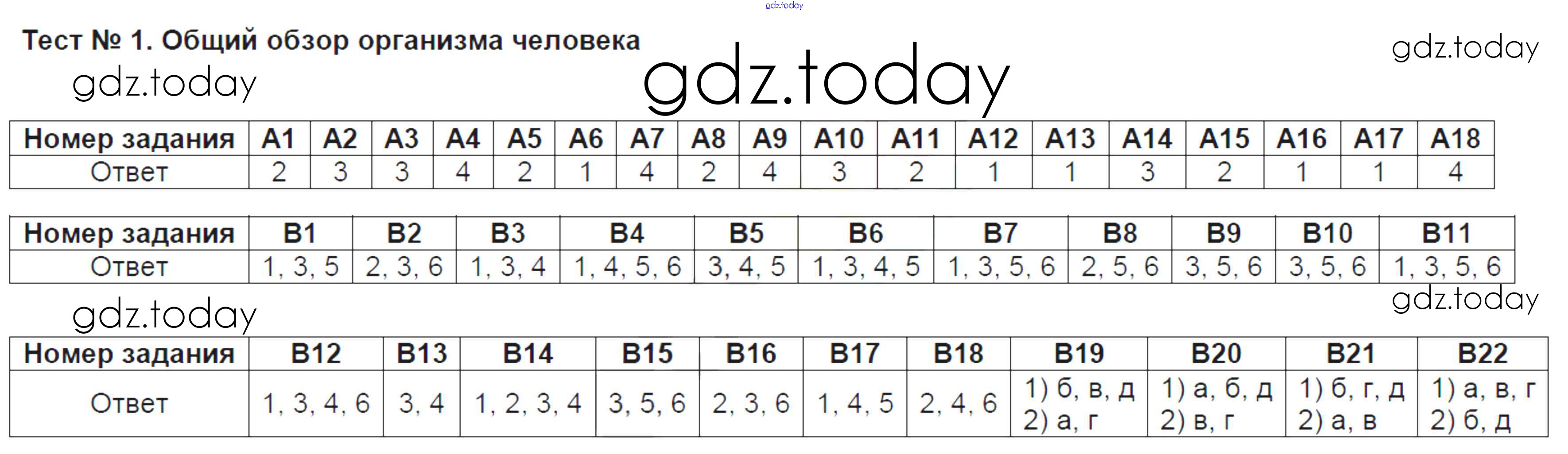 На страницах сайта gdz.today вы найдете учебный и вспомогательный материал, направленный на улучшения знаний школьной программы. ГДЗ - онлайн мир знаний Решение к тестам 1 Тестовым заданиям по Биологии для 8 класса Солодова Вентана-граф 2019