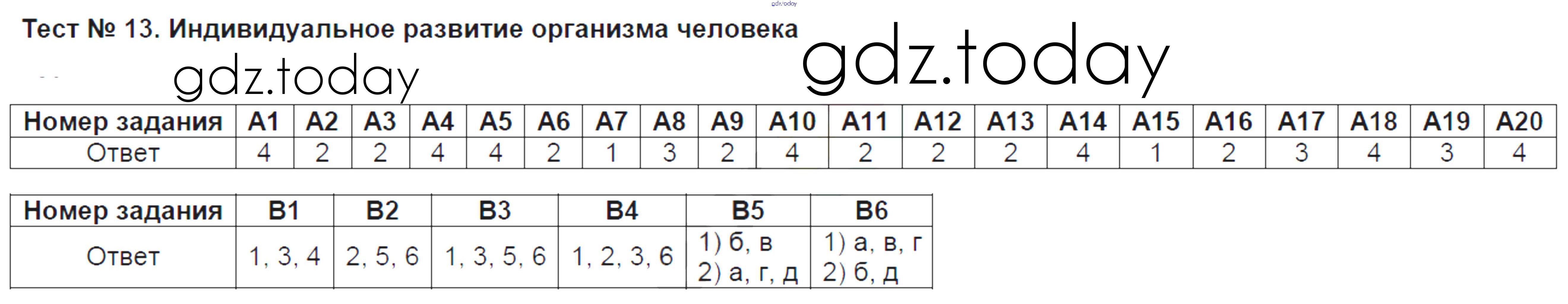 На страницах сайта gdz.today вы найдете учебный и вспомогательный материал, направленный на улучшения знаний школьной программы. ГДЗ - онлайн мир знаний Решение к тестам 13 Тестовым заданиям по Биологии для 8 класса Солодова Вентана-граф 2019