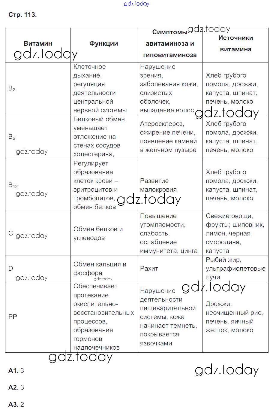 Ответы к Страницы (решение) 113 Рабочей тетради по Биологии для 8 класса Сонин, Агафонова Дрофа УМК 2017