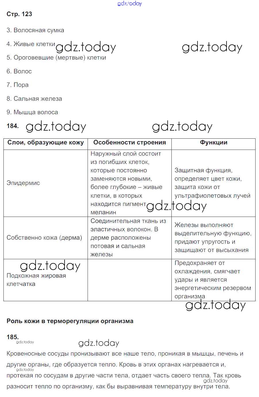 На страницах сайта gdz.today вы найдете учебный и вспомогательный материал, направленный на улучшения знаний школьной программы. ГДЗ - онлайн мир знаний Страницы (решение) 123 Рабочей тетради по Биологии для 8 класса Сонин, Агафонова Дрофа УМК 2017