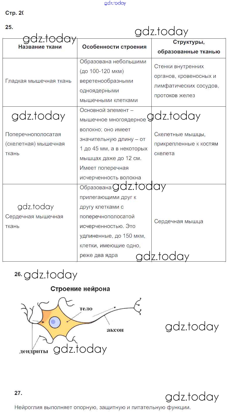 Ответы к Страницы (решение) 20 Рабочей тетради по Биологии для 8 класса Сонин, Агафонова Дрофа УМК 2017