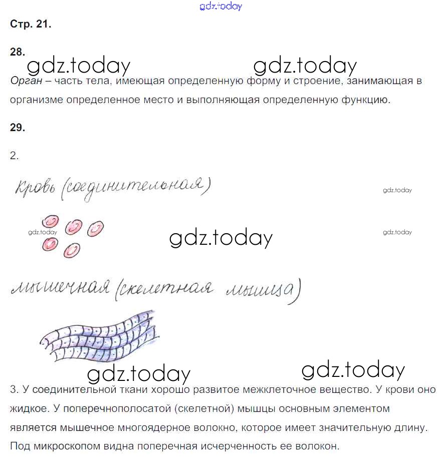 На страницах сайта gdz.today вы найдете учебный и вспомогательный материал, направленный на улучшения знаний школьной программы. ГДЗ - онлайн мир знаний Страницы (решение) 21 Рабочей тетради по Биологии для 8 класса Сонин, Агафонова Дрофа УМК 2017