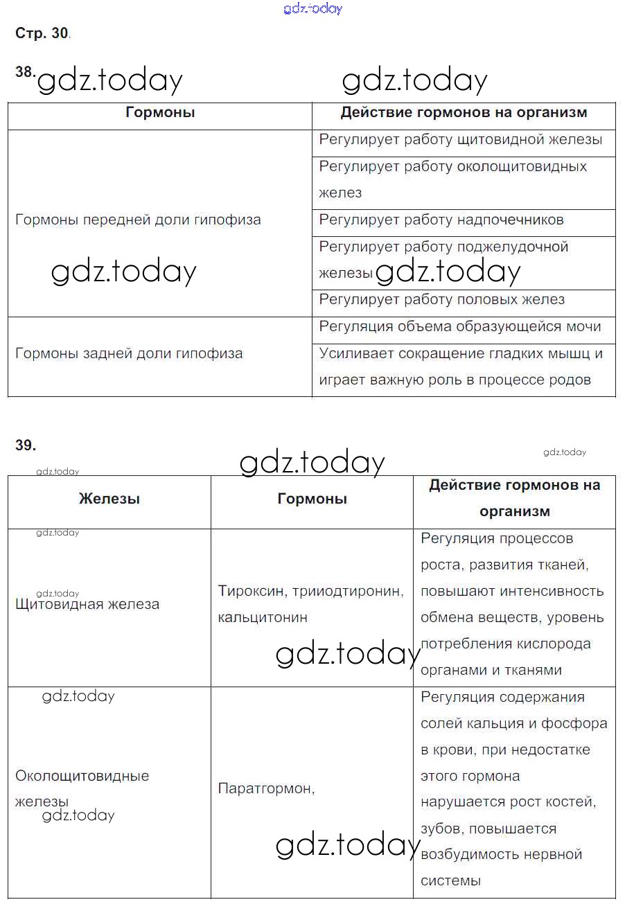 Ответы к Страницы (решение) 30 Рабочей тетради по Биологии для 8 класса Сонин, Агафонова Дрофа УМК 2017