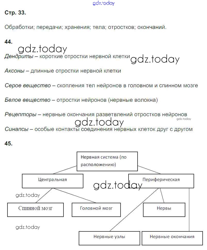 На страницах сайта gdz.today вы найдете учебный и вспомогательный материал, направленный на улучшения знаний школьной программы. ГДЗ - онлайн мир знаний Страницы (решение) 33 Рабочей тетради по Биологии для 8 класса Сонин, Агафонова Дрофа УМК 2017