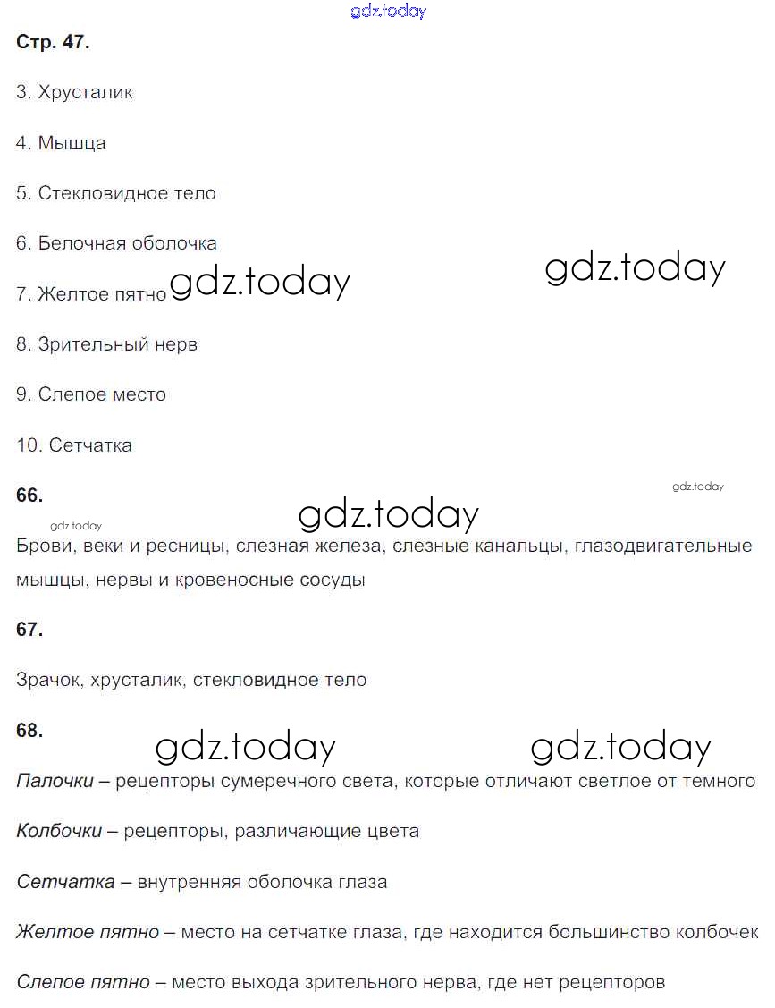 На страницах сайта gdz.today вы найдете учебный и вспомогательный материал, направленный на улучшения знаний школьной программы. ГДЗ - онлайн мир знаний Страницы (решение) 47 Рабочей тетради по Биологии для 8 класса Сонин, Агафонова Дрофа УМК 2017
