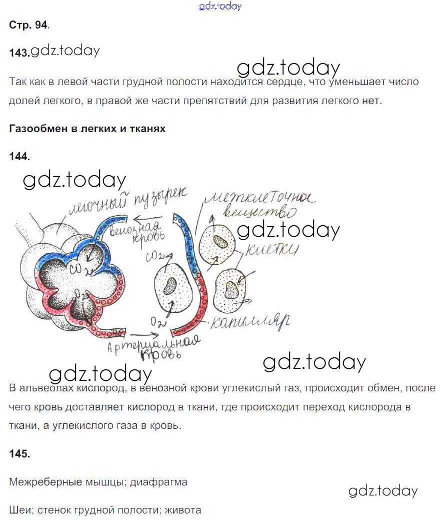 Ответы к Страницы (решение) 94 Рабочей тетради по Биологии для 8 класса Сонин, Агафонова Дрофа УМК 2017