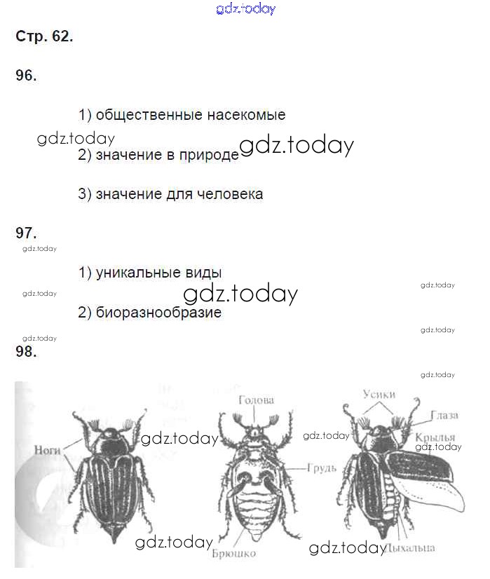 На страницах сайта gdz.today вы найдете учебный и вспомогательный материал, направленный на улучшения знаний школьной программы. ГДЗ - онлайн мир знаний Страницы (решение) 62 Рабочей тетради по Биологии для 8 класса Захаров, Сонина Дрофа УМК 2018