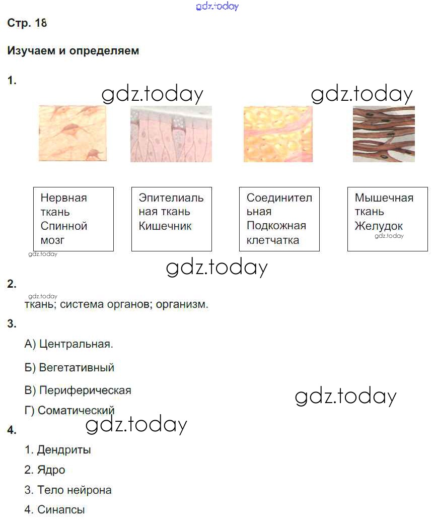 На страницах сайта gdz.today вы найдете учебный и вспомогательный материал, направленный на улучшения знаний школьной программы. ГДЗ - онлайн мир знаний Страницы (решение) 18 Тетради-тренажеру по Биологии для 8 класса Сухорукова, Кучменко Просвещение Сферы 2017