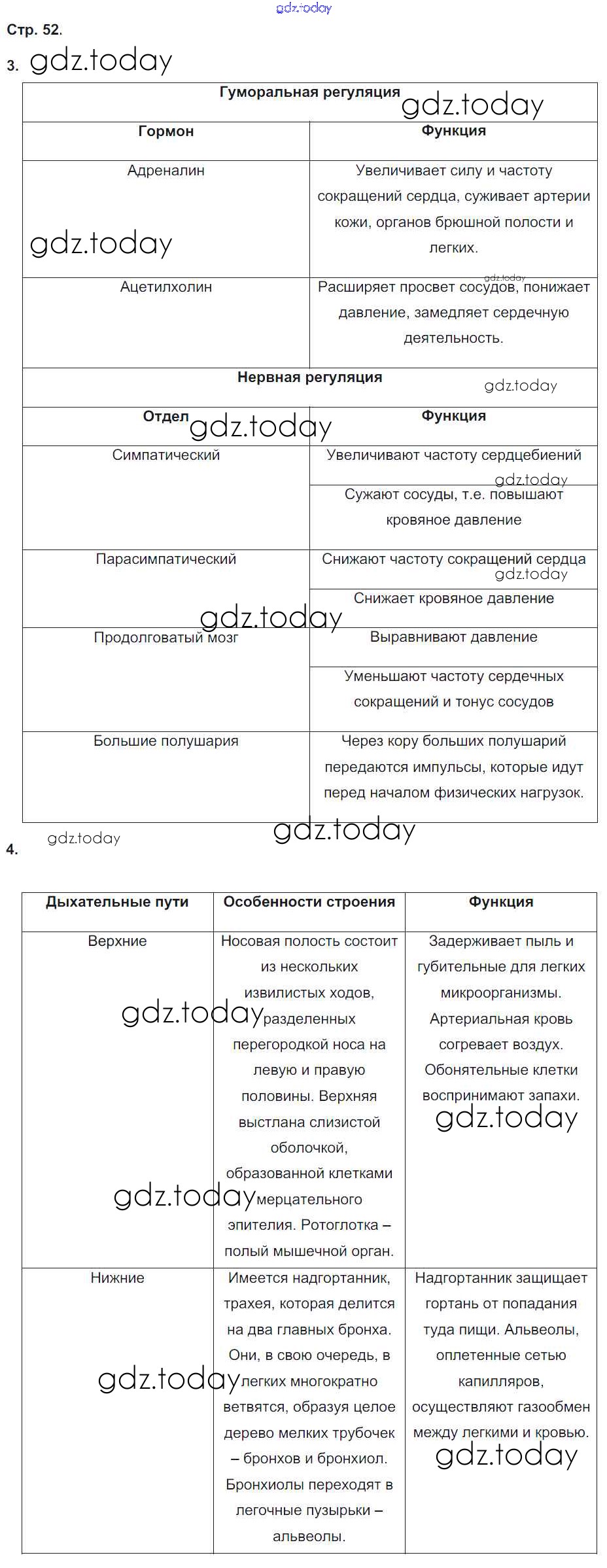 Ответы к Страницы (решение) 52 Тетради-тренажеру по Биологии для 8 класса Сухорукова, Кучменко Просвещение Сферы 2017
