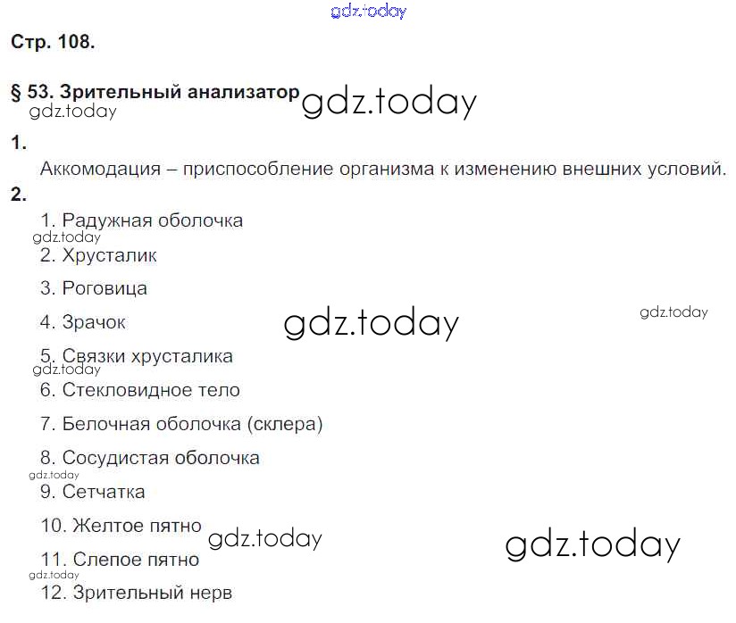 На страницах сайта gdz.today вы найдете учебный и вспомогательный материал, направленный на улучшения знаний школьной программы. ГДЗ - онлайн мир знаний Страницы (решение) 108 Рабочей тетради по Биологии для 8 класса Жемчугова, Романова Русское слово Инновационная школа 2017