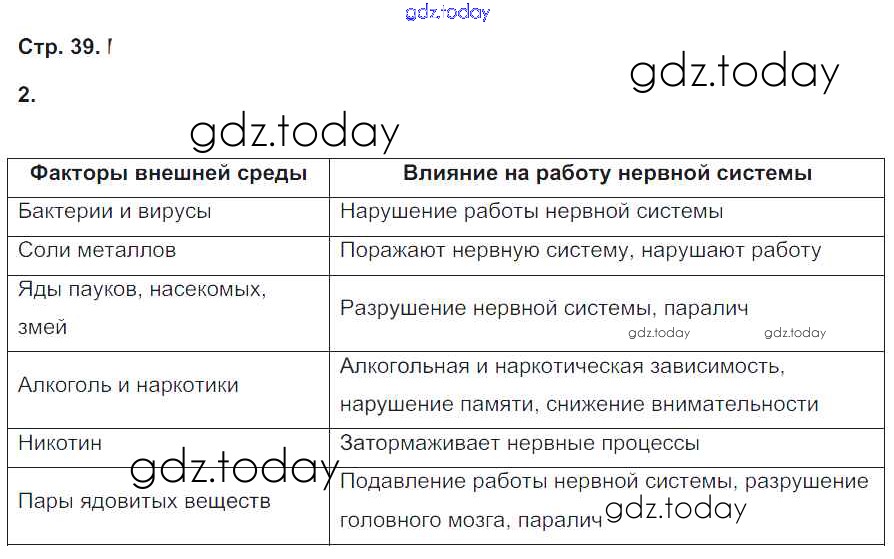 На страницах сайта gdz.today вы найдете учебный и вспомогательный материал, направленный на улучшения знаний школьной программы. ГДЗ - онлайн мир знаний Страницы (решение) 39 Рабочей тетради по Биологии для 8 класса Жемчугова, Романова Русское слово Инновационная школа 2017