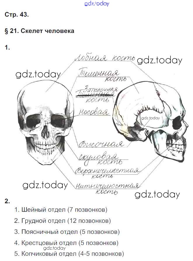 На страницах сайта gdz.today вы найдете учебный и вспомогательный материал, направленный на улучшения знаний школьной программы. ГДЗ - онлайн мир знаний Страницы (решение) 43 Рабочей тетради по Биологии для 8 класса Жемчугова, Романова Русское слово Инновационная школа 2017