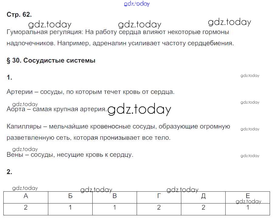 Ответы к Страницы (решение) 62 Рабочей тетради по Биологии для 8 класса Жемчугова, Романова Русское слово Инновационная школа 2017