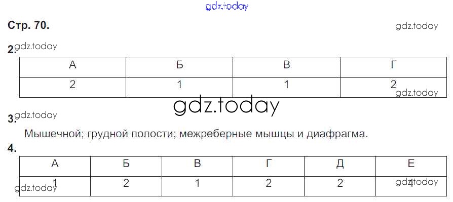 Ответы к Страницы (решение) 70 Рабочей тетради по Биологии для 8 класса Жемчугова, Романова Русское слово Инновационная школа 2017