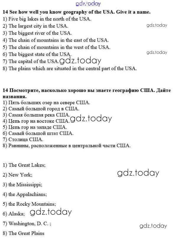 На страницах сайта gdz.today вы найдете учебный и вспомогательный материал, направленный на улучшения знаний школьной программы. ГДЗ - онлайн мир знаний Step 2 Решение к Unit 1. Visiting the USA 14 Учебнику по Английскому языку для 8 класса Афанасьева, Михеева Дрофа Новый курс 2017