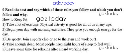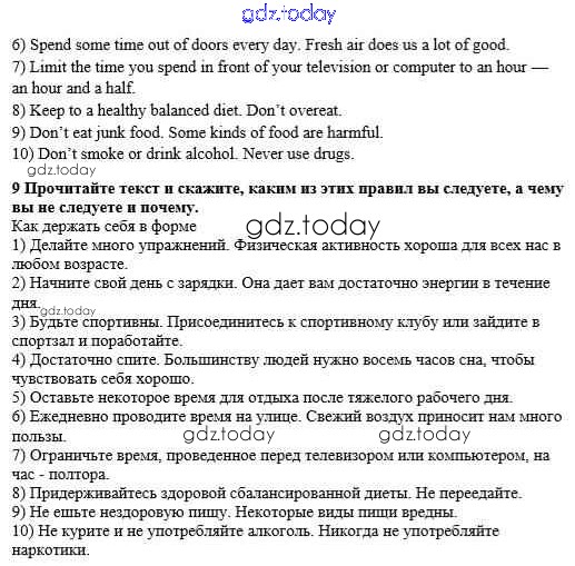 На страницах сайта gdz.today вы найдете учебный и вспомогательный материал, направленный на улучшения знаний школьной программы. ГДЗ - онлайн мир знаний Step 1 Решение к Unit 5. Keeping Fit 9 Учебнику по Английскому языку для 8 класса Афанасьева, Михеева Дрофа Новый курс 2017