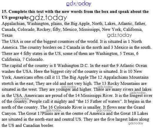 На страницах сайта gdz.today вы найдете учебный и вспомогательный материал, направленный на улучшения знаний школьной программы. ГДЗ - онлайн мир знаний Unit 1. Visiting the USA Решение к тетради №1 15 Рабочей тетради по Английскому языку для 8 класса Афанасьева, Михеева Дрофа Новый курс 2017