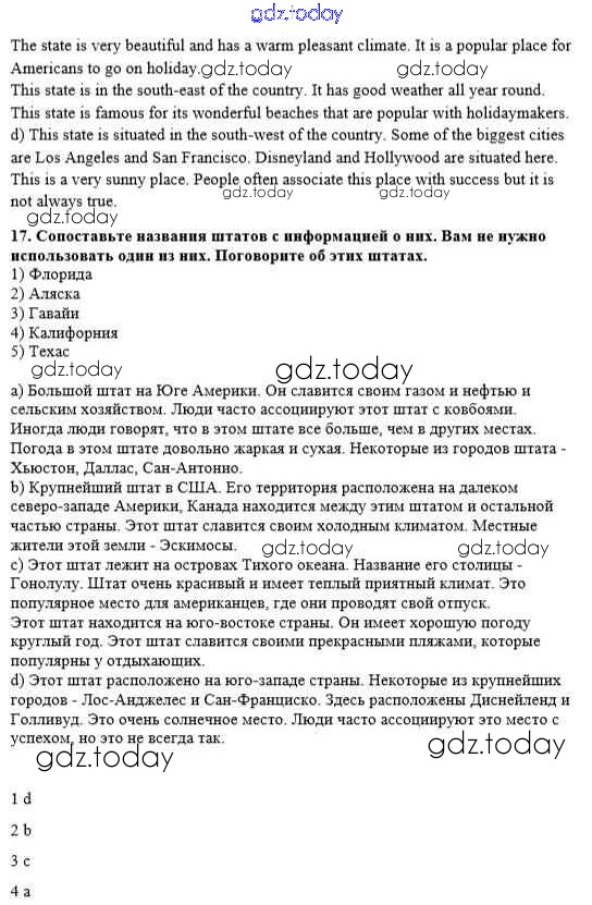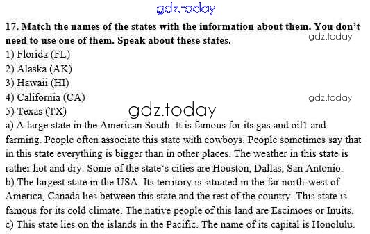 На страницах сайта gdz.today вы найдете учебный и вспомогательный материал, направленный на улучшения знаний школьной программы. ГДЗ - онлайн мир знаний Unit 1. Visiting the USA Решение к тетради №1 17 Рабочей тетради по Английскому языку для 8 класса Афанасьева, Михеева Дрофа Новый курс 2017
