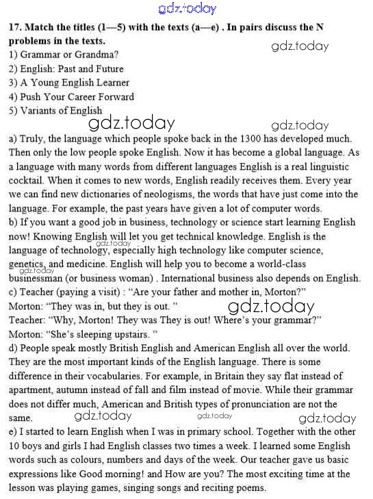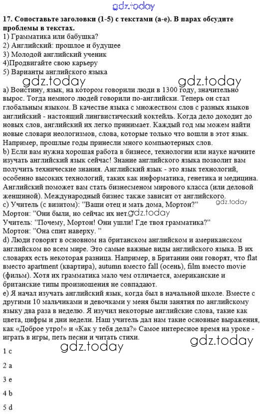 На страницах сайта gdz.today вы найдете учебный и вспомогательный материал, направленный на улучшения знаний школьной программы. ГДЗ - онлайн мир знаний Unit 2. English - a Global Language Решение к тетради №1 17 Рабочей тетради по Английскому языку для 8 класса Афанасьева, Михеева Дрофа Новый курс 2017